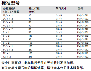 有关此类皮囊气缸的精确计算,请咨询本公司技术服务部。